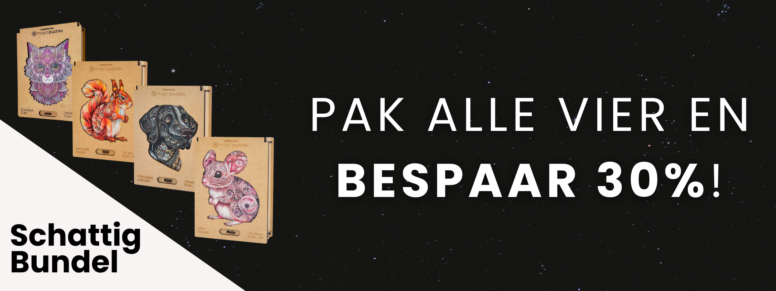 De meeste van onze puzzels zijn er maar in รฉรฉn maat (M), maar onze bestsellers zijn ook verkrijgbaar in een kleinere en grotere versie. Kies je favoriet en maak je klaar voor uren puzzelplezier! ๐Ÿ˜Š