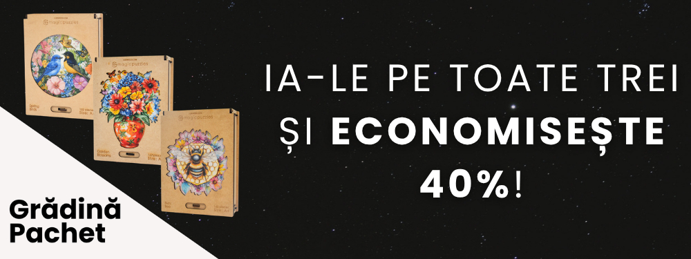 Cele mai multe dintre puzzle-urile noastre sunt disponibile doar într-o singură mărime (M), însă cele mai bine vândute puzzle-uri sunt disponibile și într-o versiune mai mică și una mai mare. Alege preferatul și pregătește-te pentru ore întregi de distracție la rezolvarea puzzle-urilor! 😊